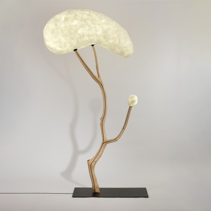 Cocons de soie naturelle, LEDs, métal laqué noir